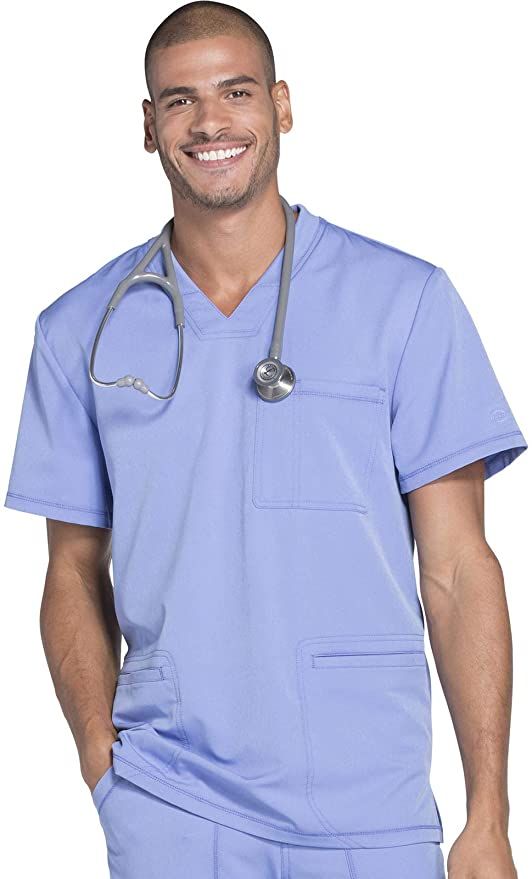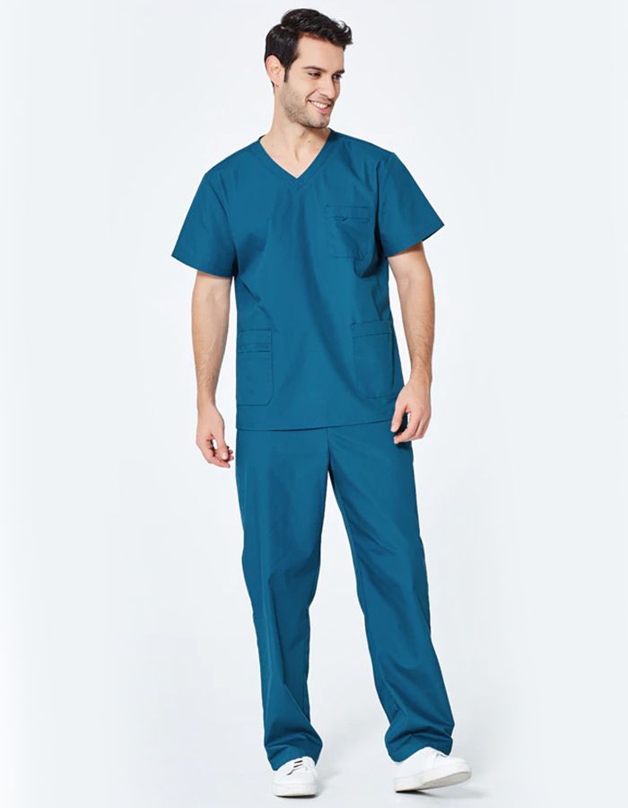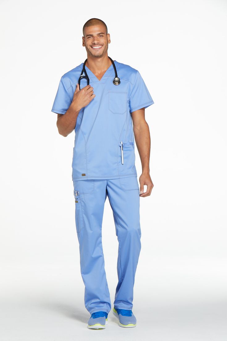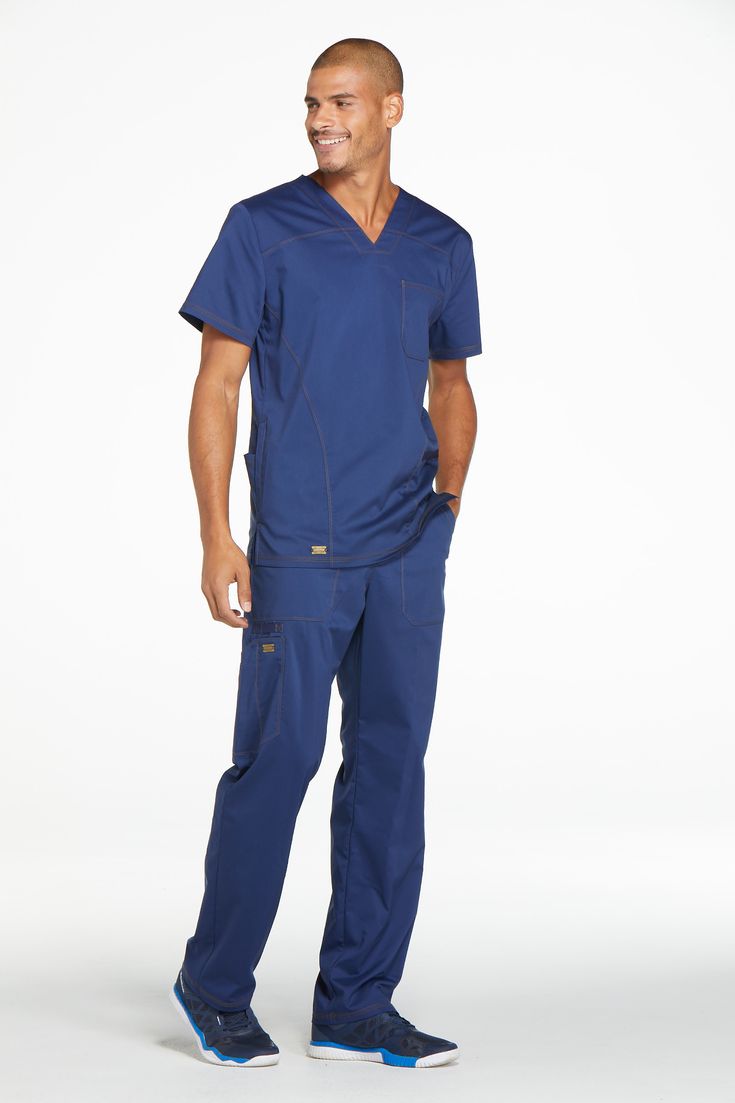 Top: V-neck with pen loop and chest pocket